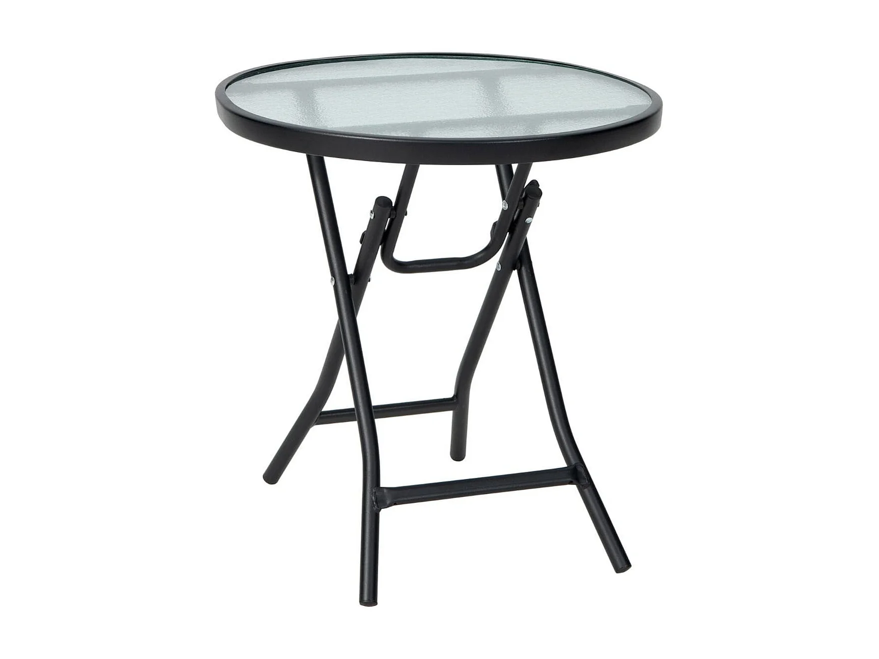 Tavolo bistrò quadrato con telaio antiruggine da patio, Tavolo da pranzo pieghevole con piano in vetro temperato