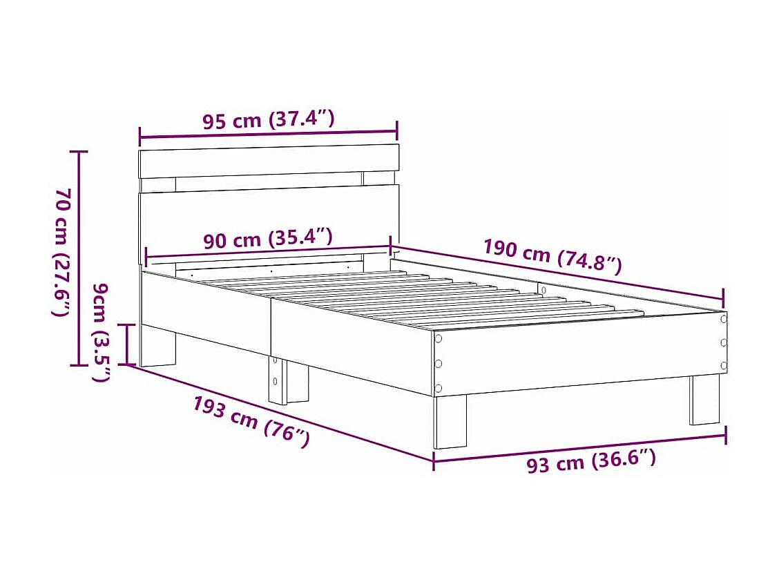 Struttura del letto con testiera rovere artigianale 90 x 190 cm