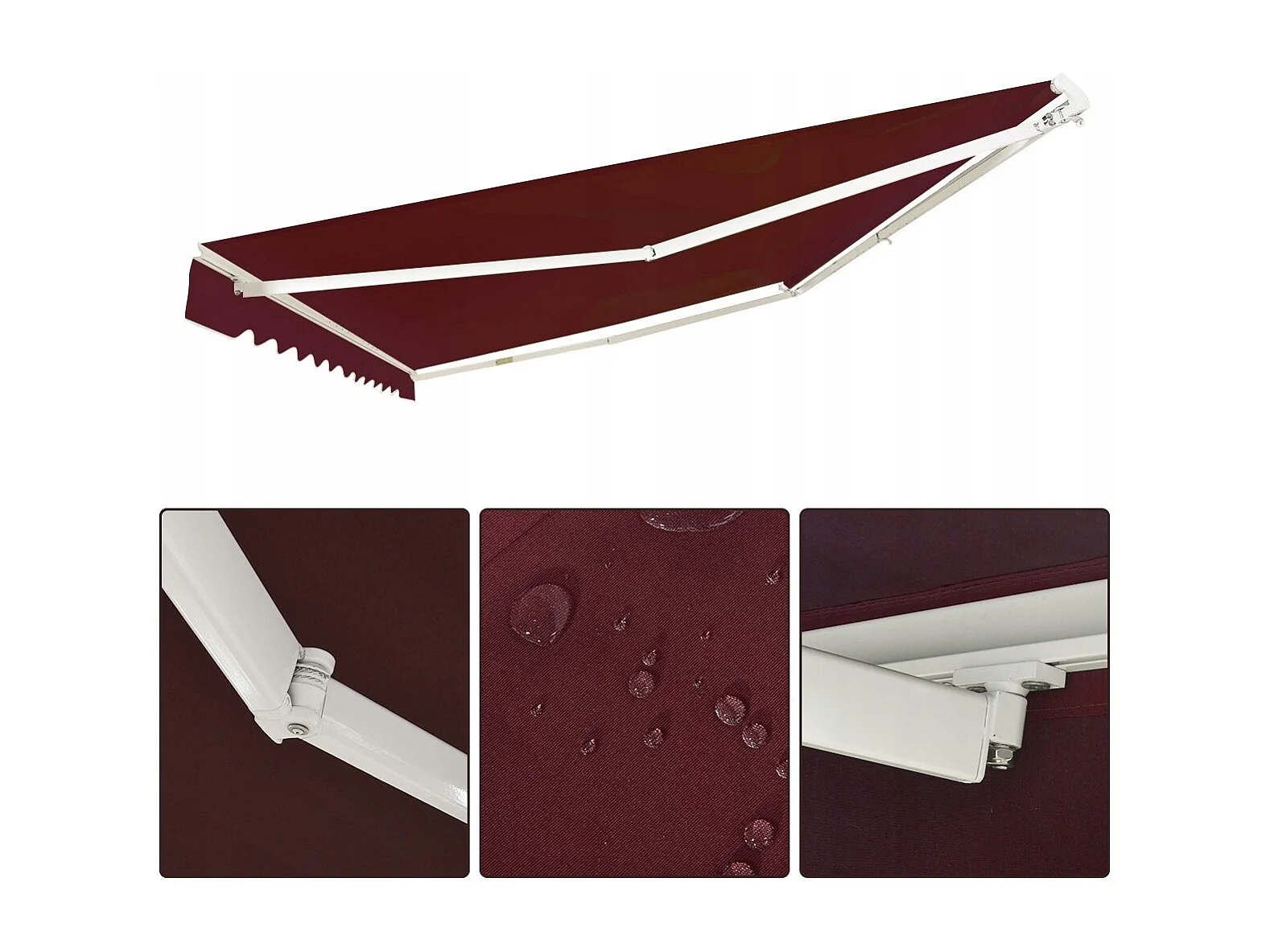 Tenda da sole retrattile 3 x 2,5m, Tenda in alluminio con manovella e poliestere impermeabile, Vino