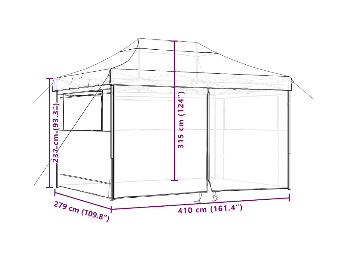 Tenda pieghevole pop-up per ricevimenti con 4 pareti laterali