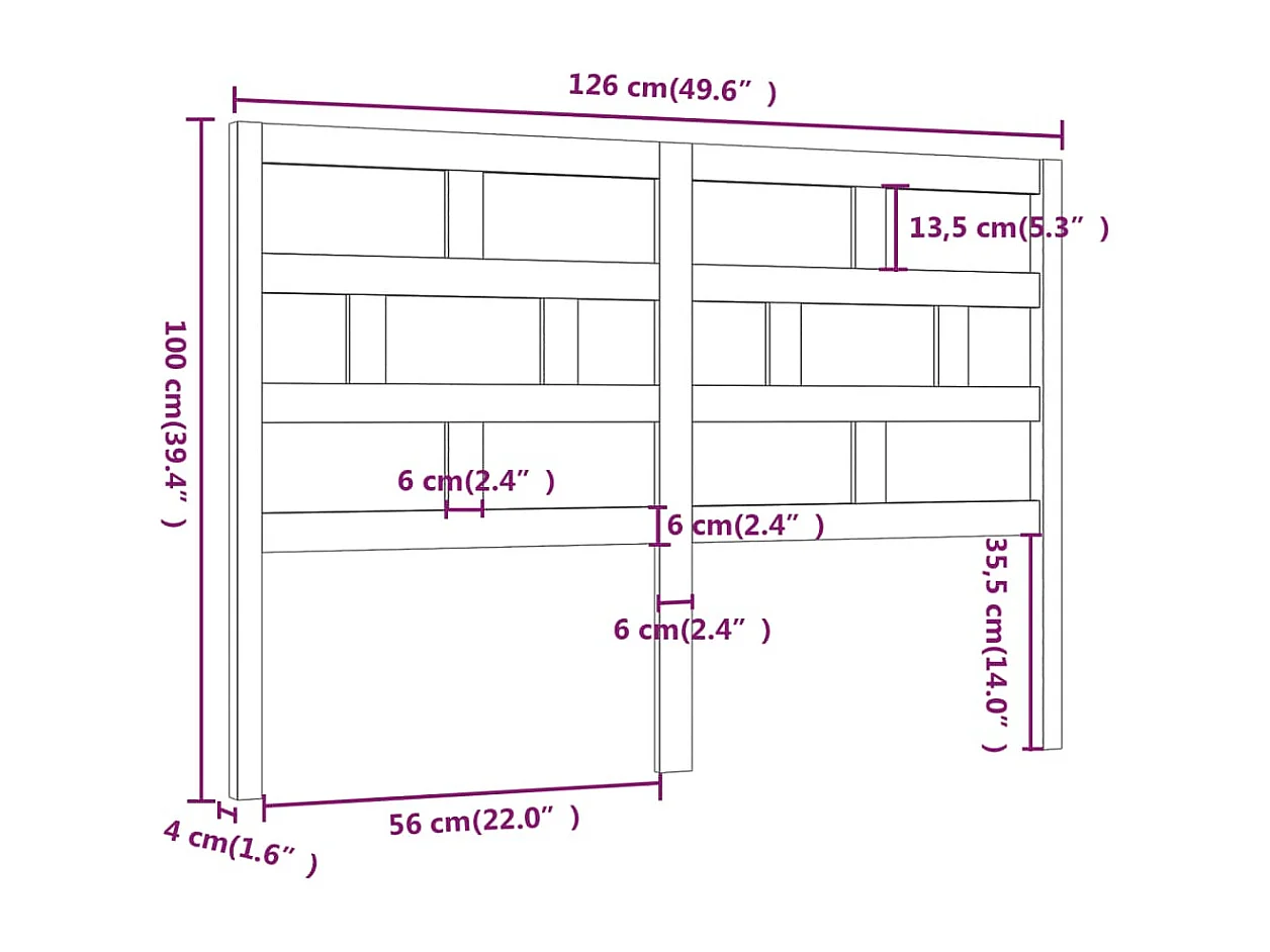 Testiera Marrone Miele 126x4x100 cm Legno di Pino Massiccio