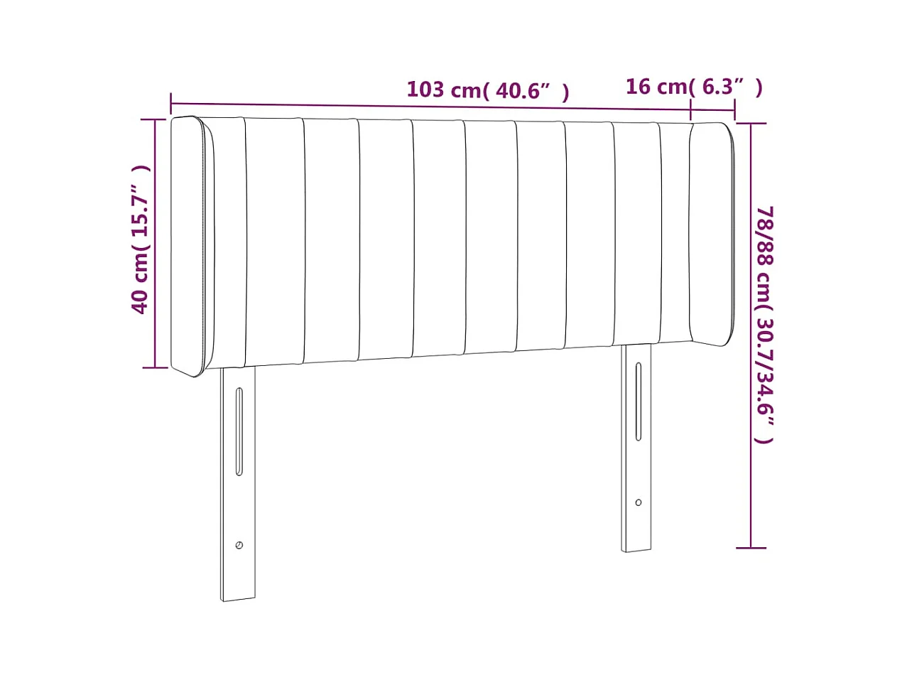 Testiera con ali Nero 103x16x78/88 cm Velluto