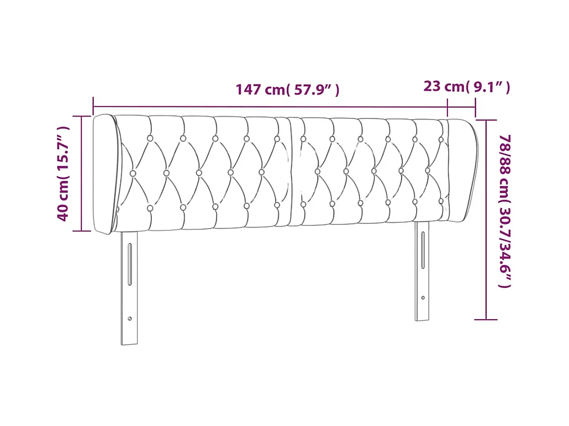 Testiera con ali Nero 147x23x78/88 cm Velluto