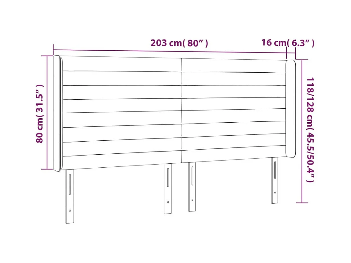 Testiera LED Crema 203x16x118/128 cm Tessuto