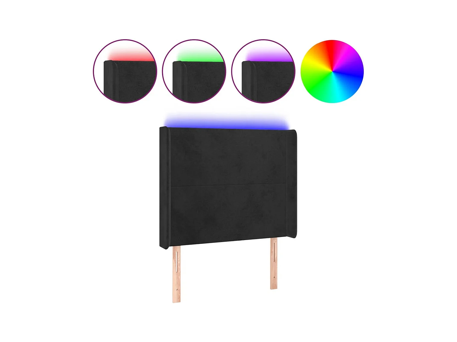 Testiera LED Nero 103x16x118/128 cm Velluto