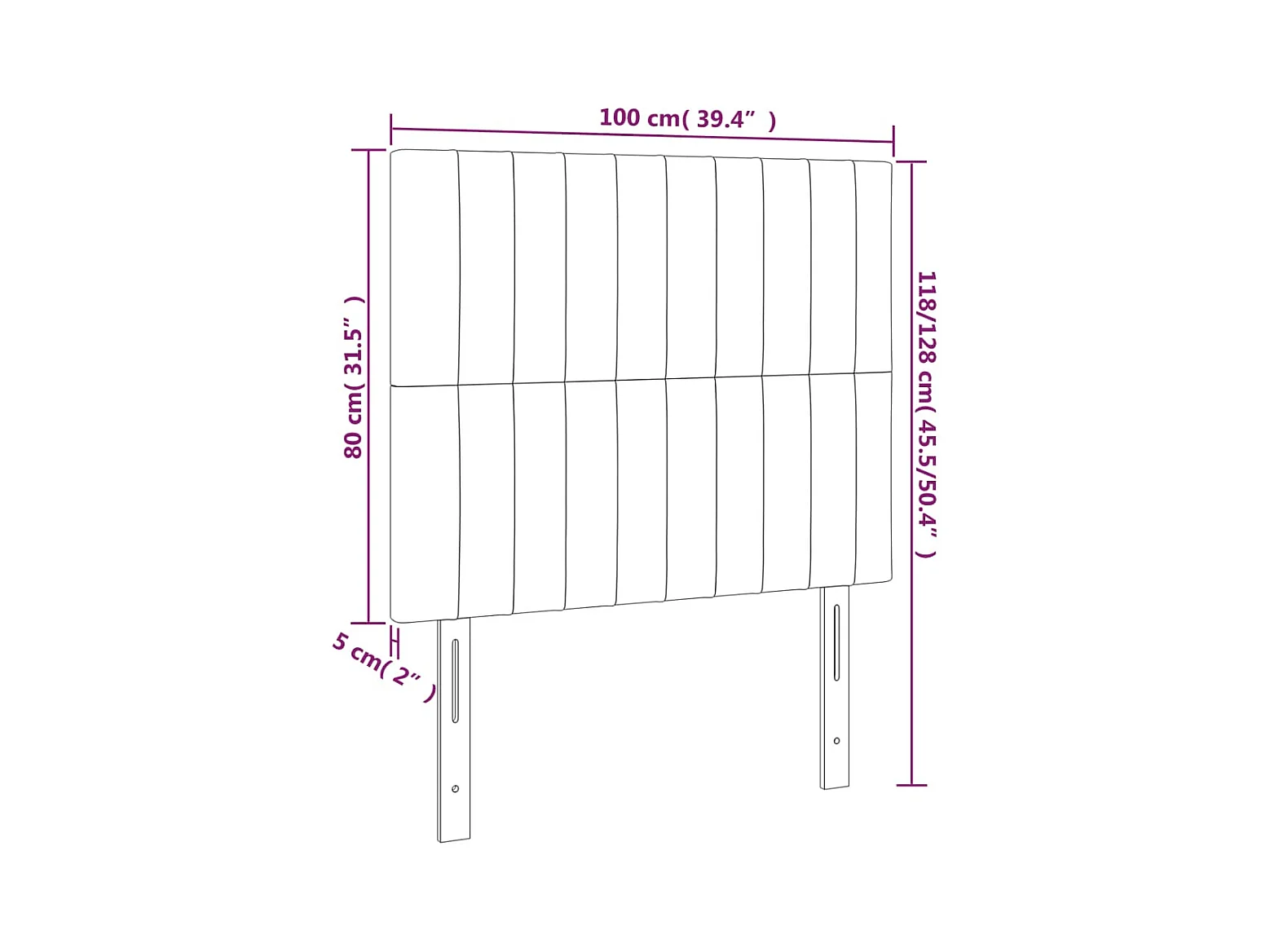 Testiera LED Nero 100x5x118/128 cm Tessuto