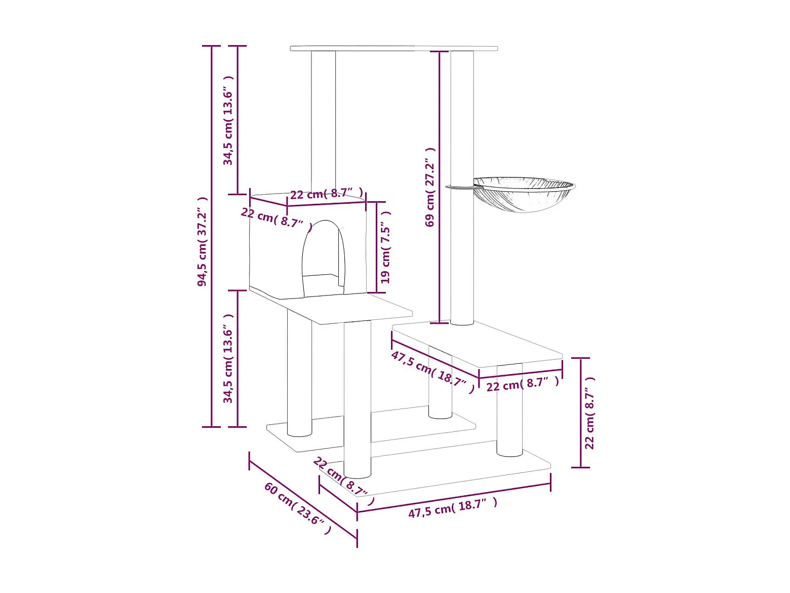 Tiragraffi con pali in sisal grigio scuro 110,5 cm