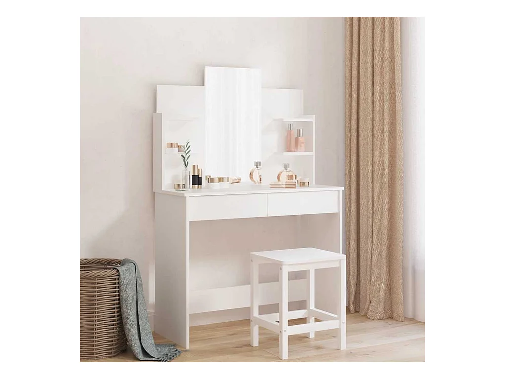Toletta con specchio bianco 90x50x132,5 cm in legno ingegnerizzato