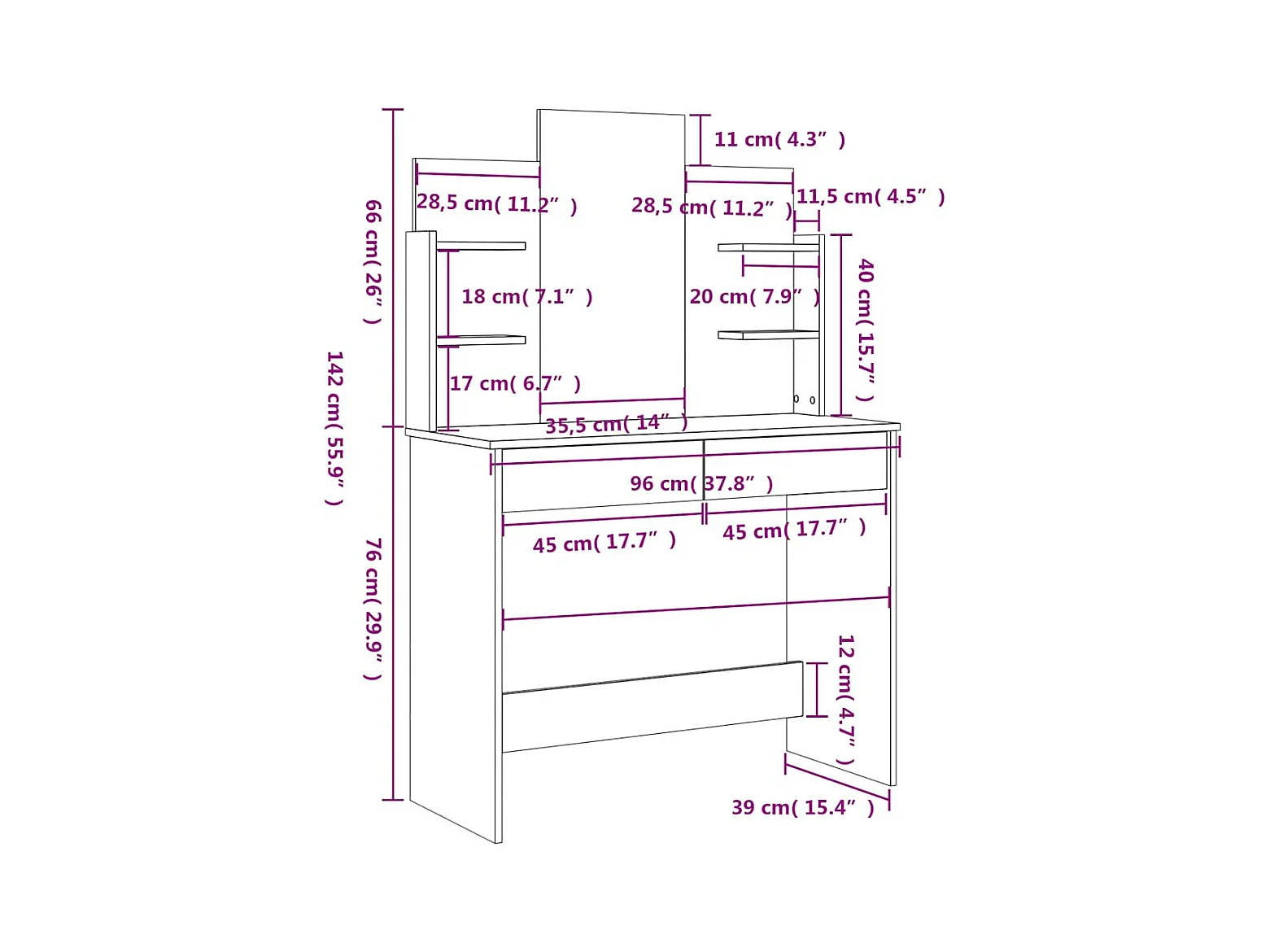 Toletta con specchio MDF 60 x 40 x 75 cm