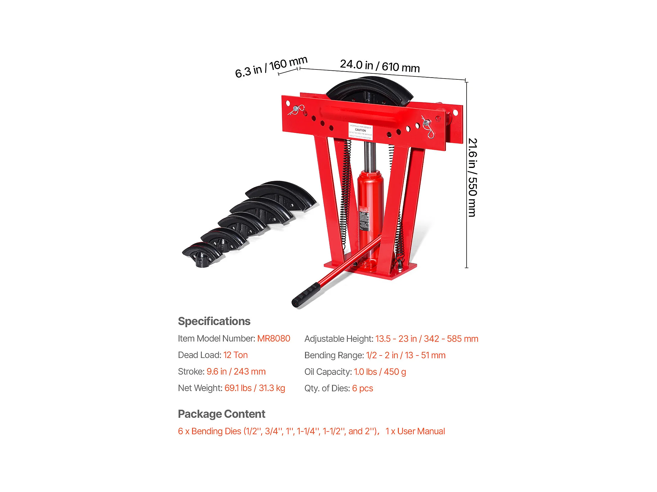 Curvatrice per Tubi Idraulica SucceBuy, 12 Tonnellate, Strumento Manuale con 6 Matrici, Robusta, Rotoli Regolabili a 90-180°