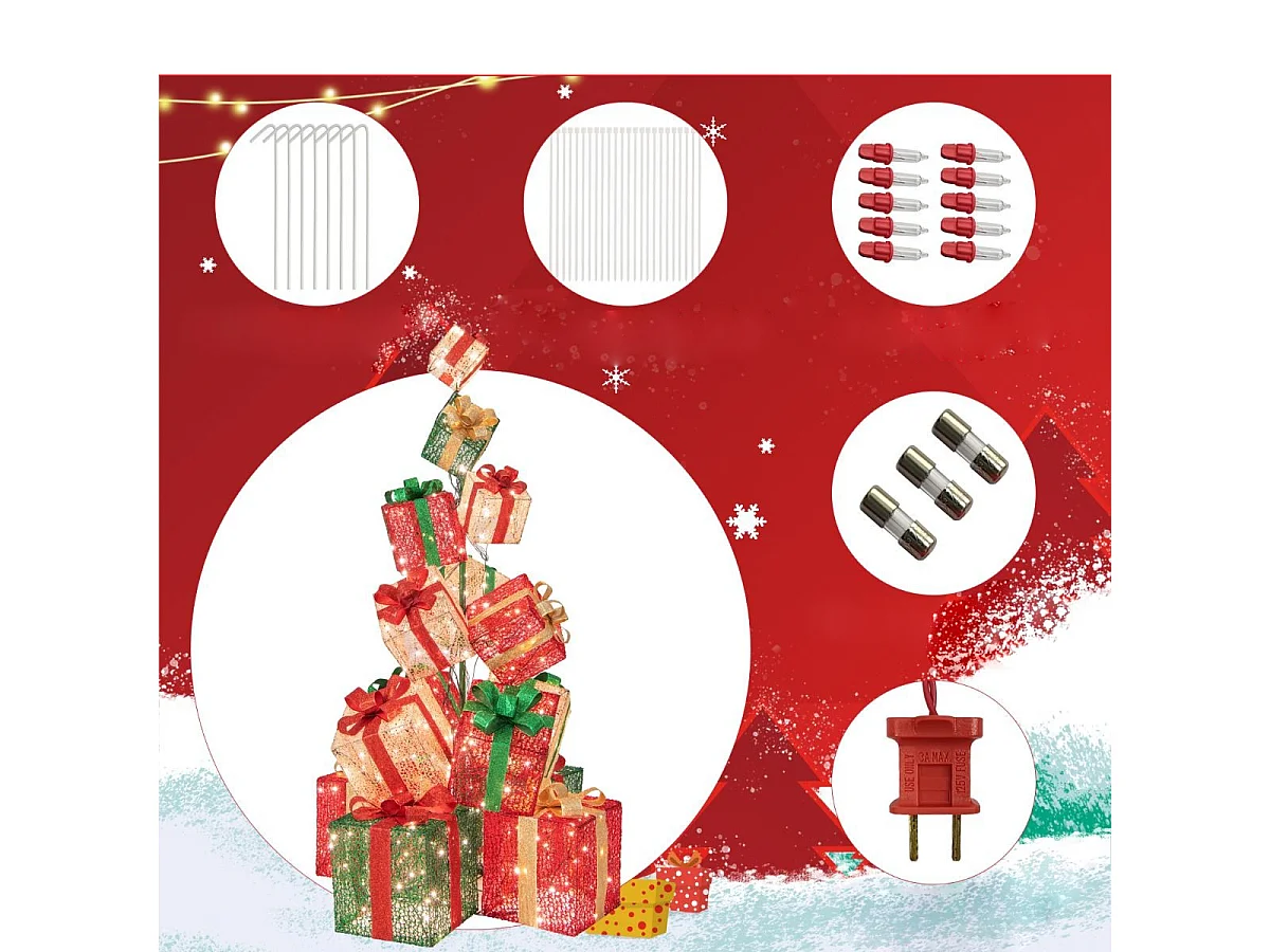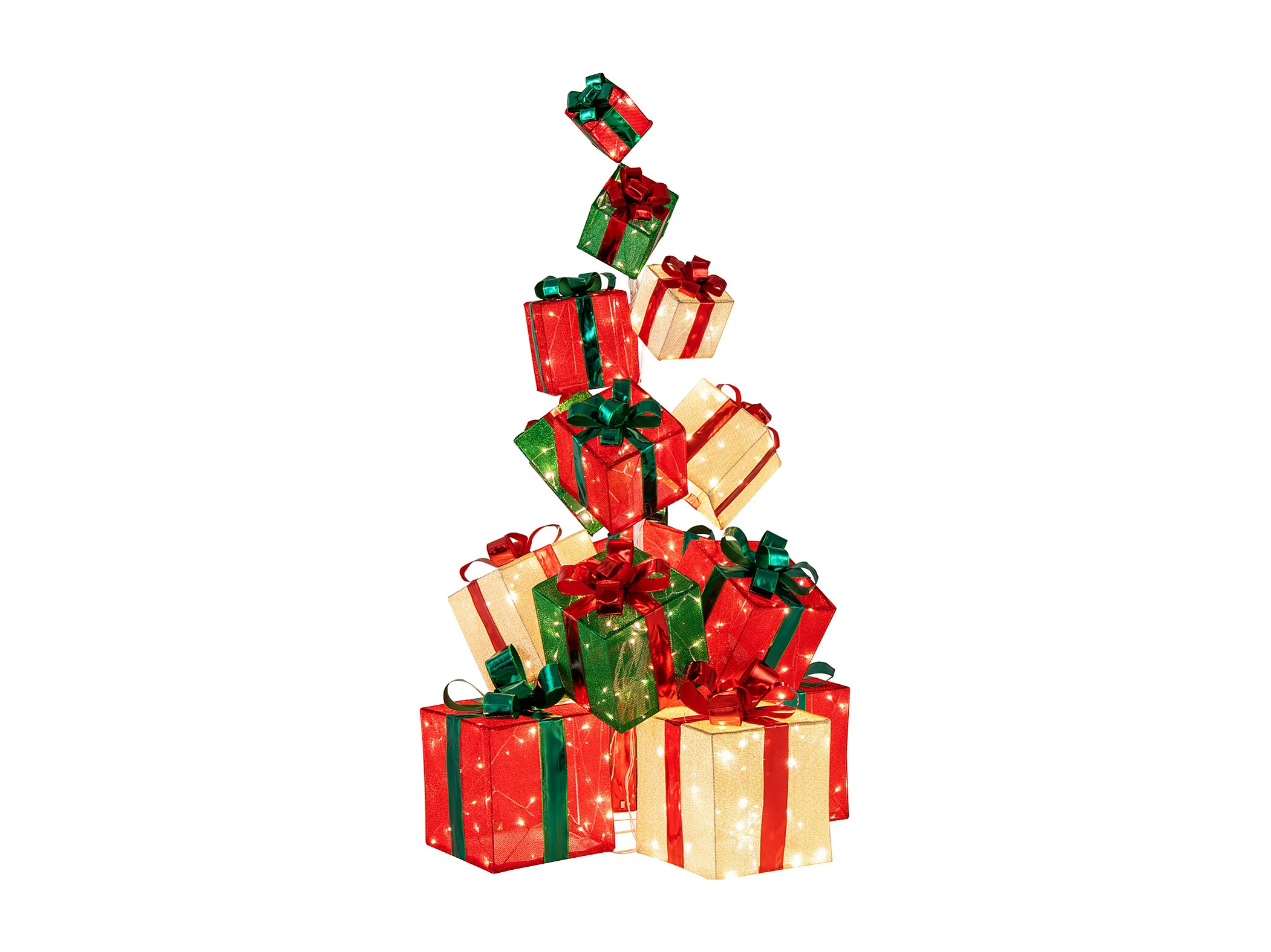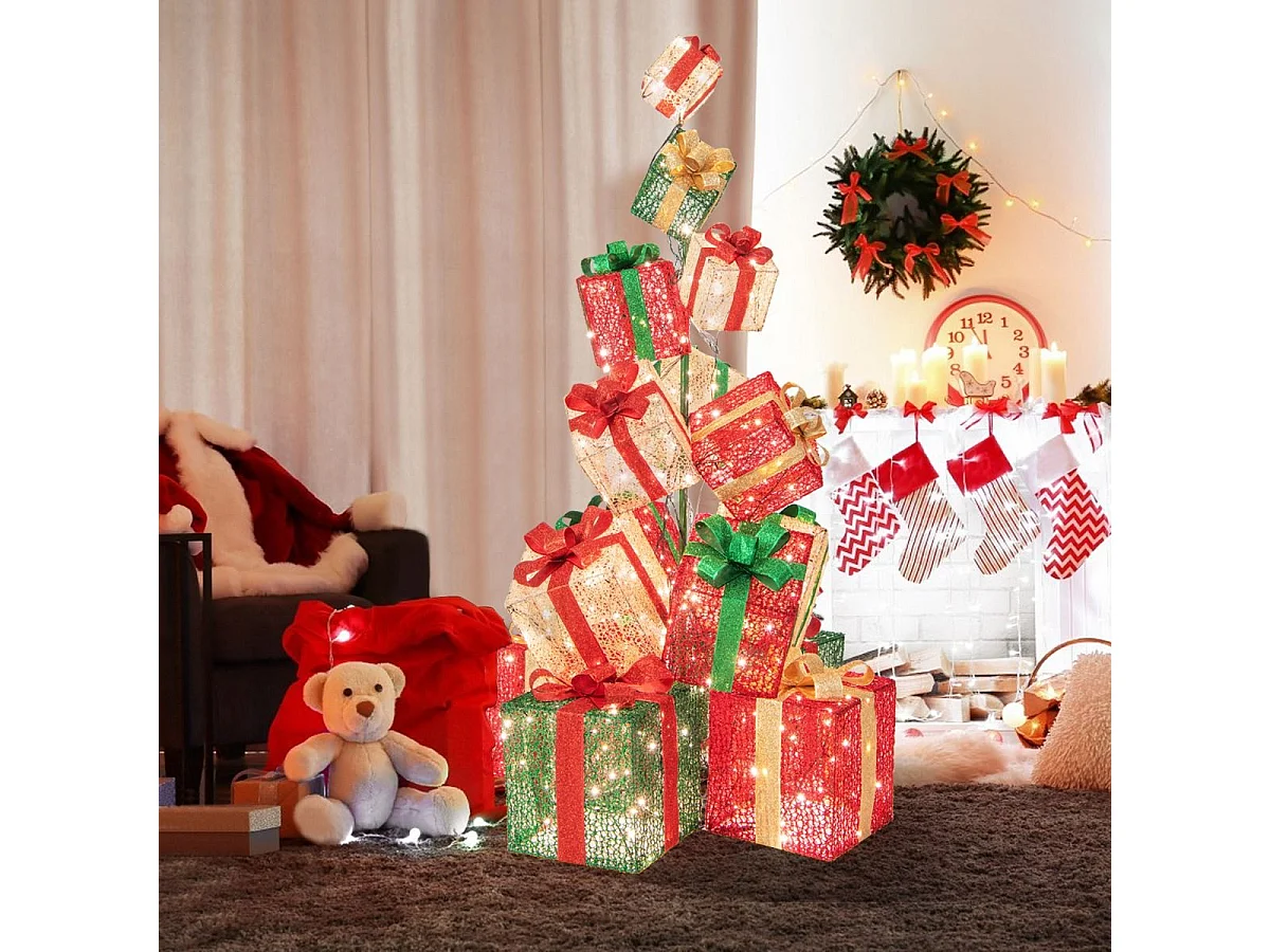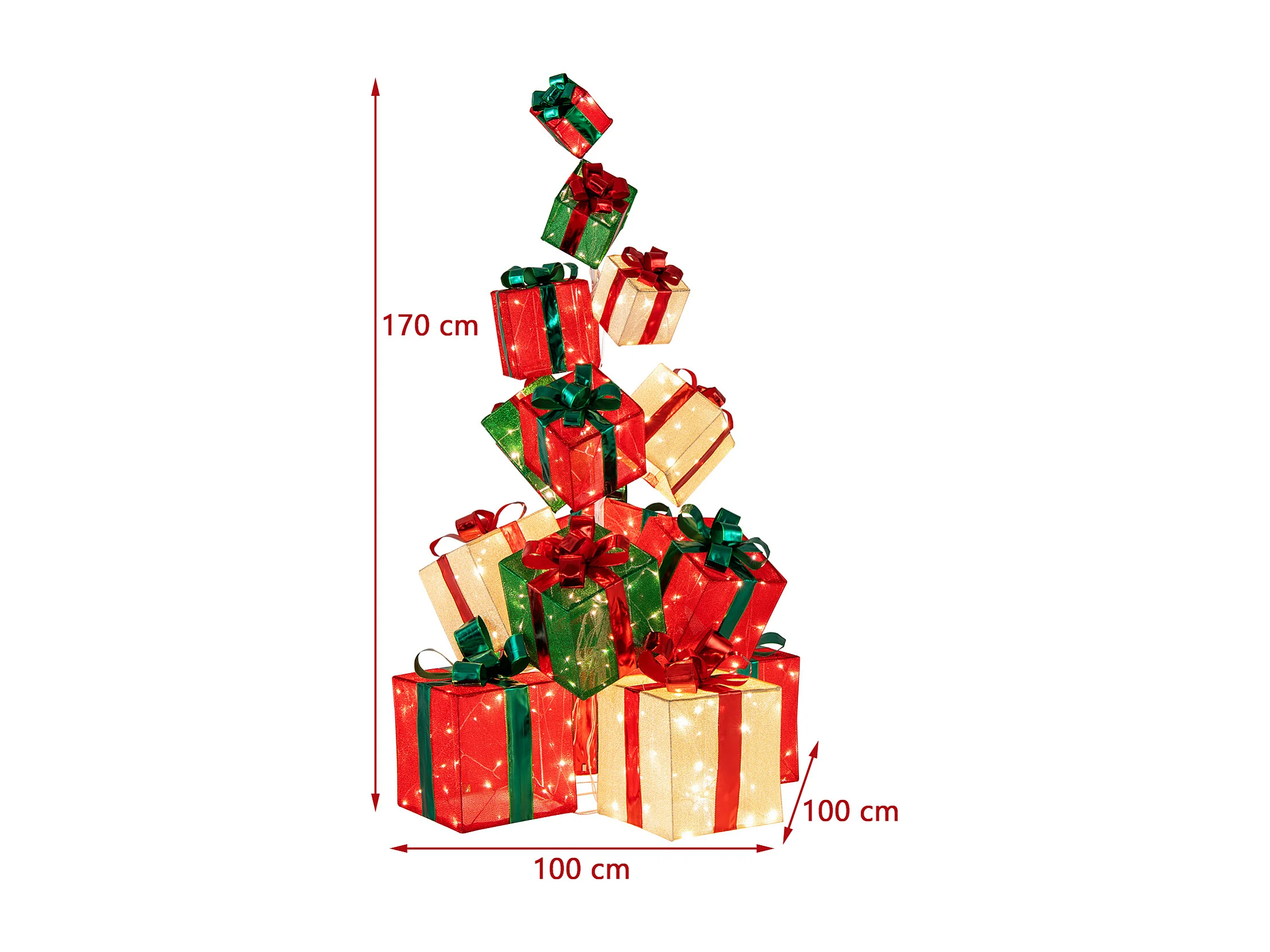 Torre di scatole regalo con 450 luci bianche calde, 15 Scatole regalo pre-illuminate impilate 100x100x170cm