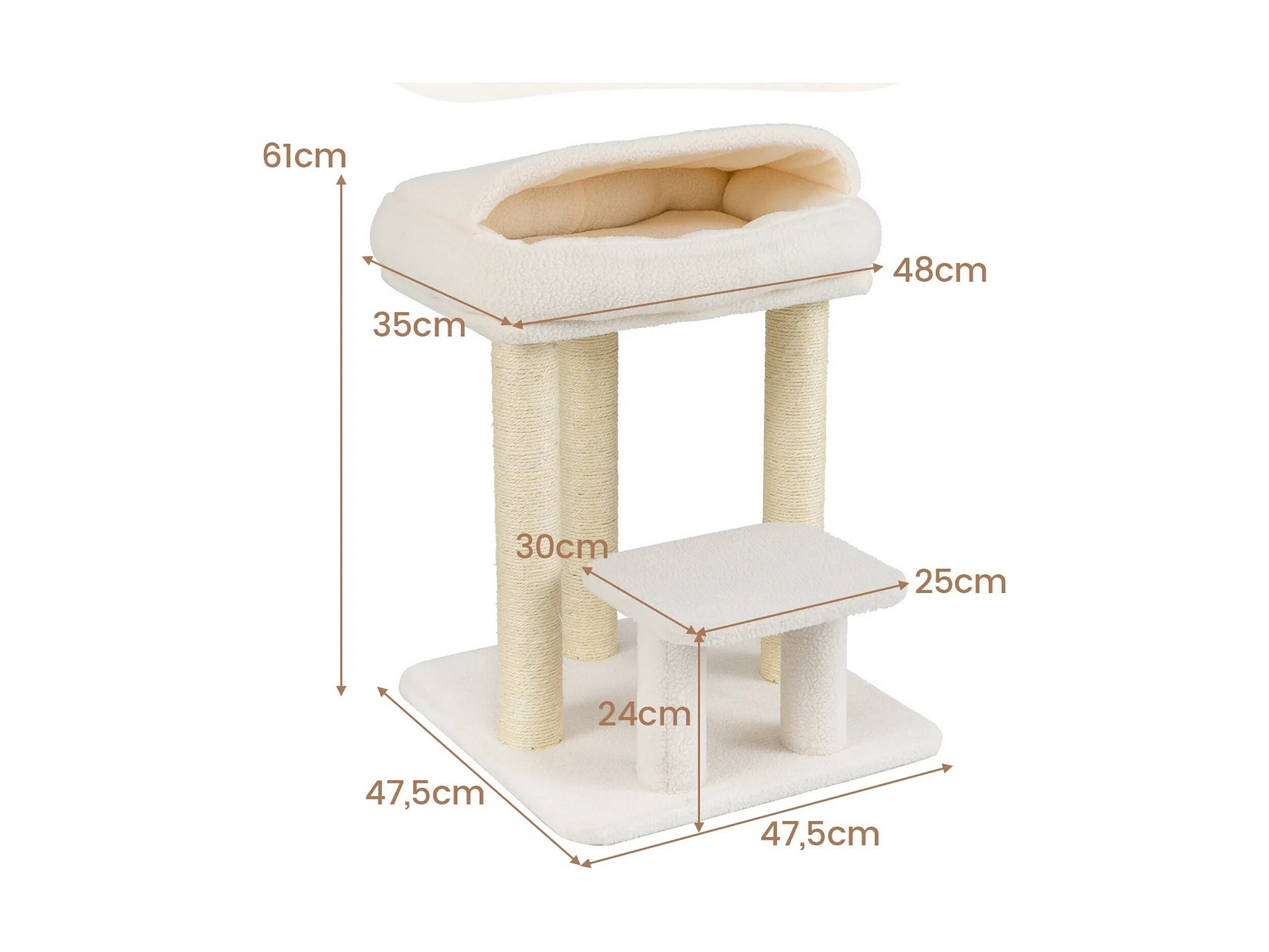 Torre per gattini con letto in peluche pali tiragraffi in sisal piattaforma per salto, Albero per gatti piccolo da interno Bianco