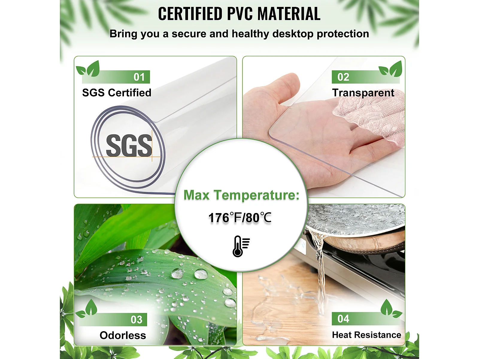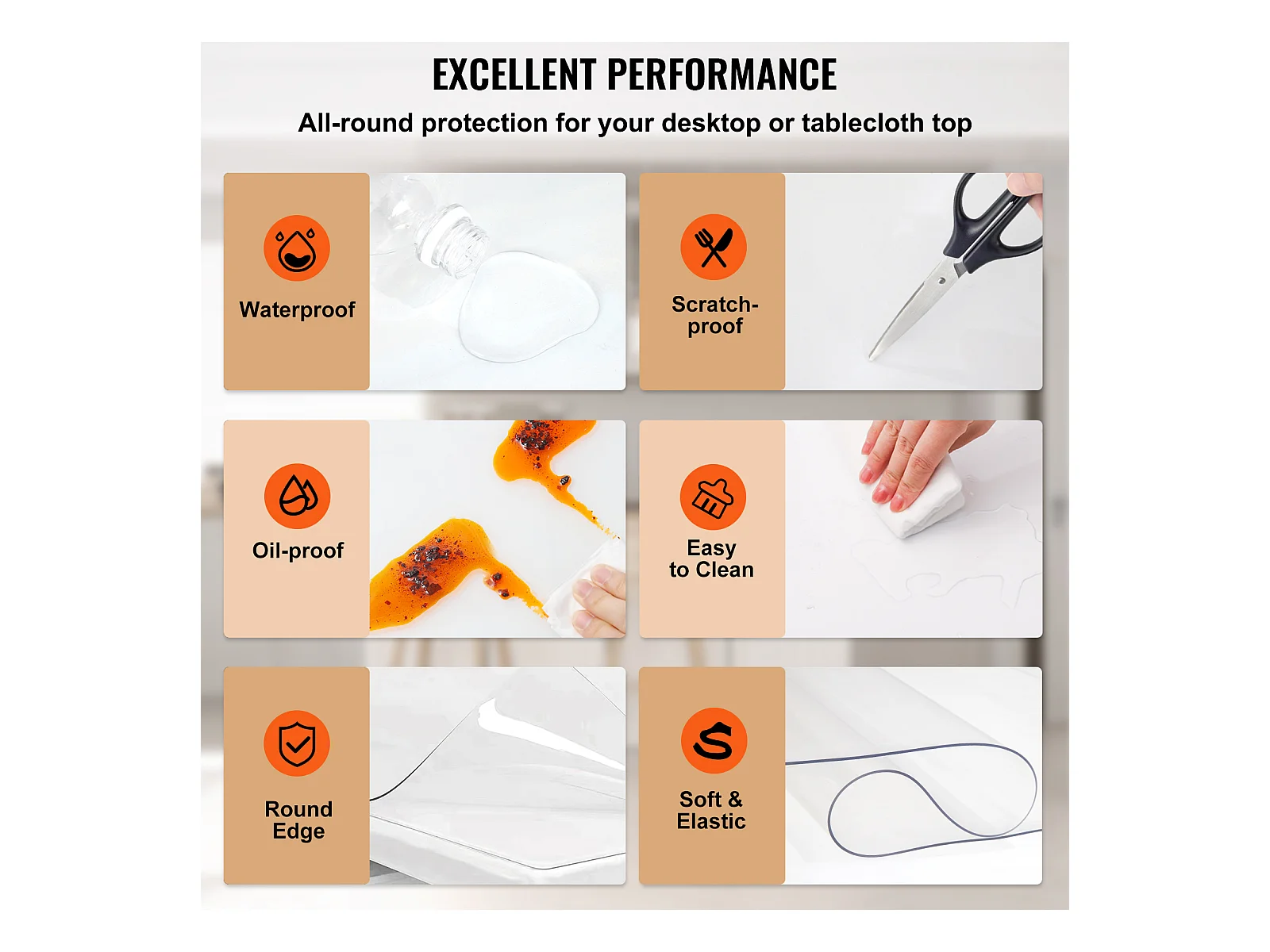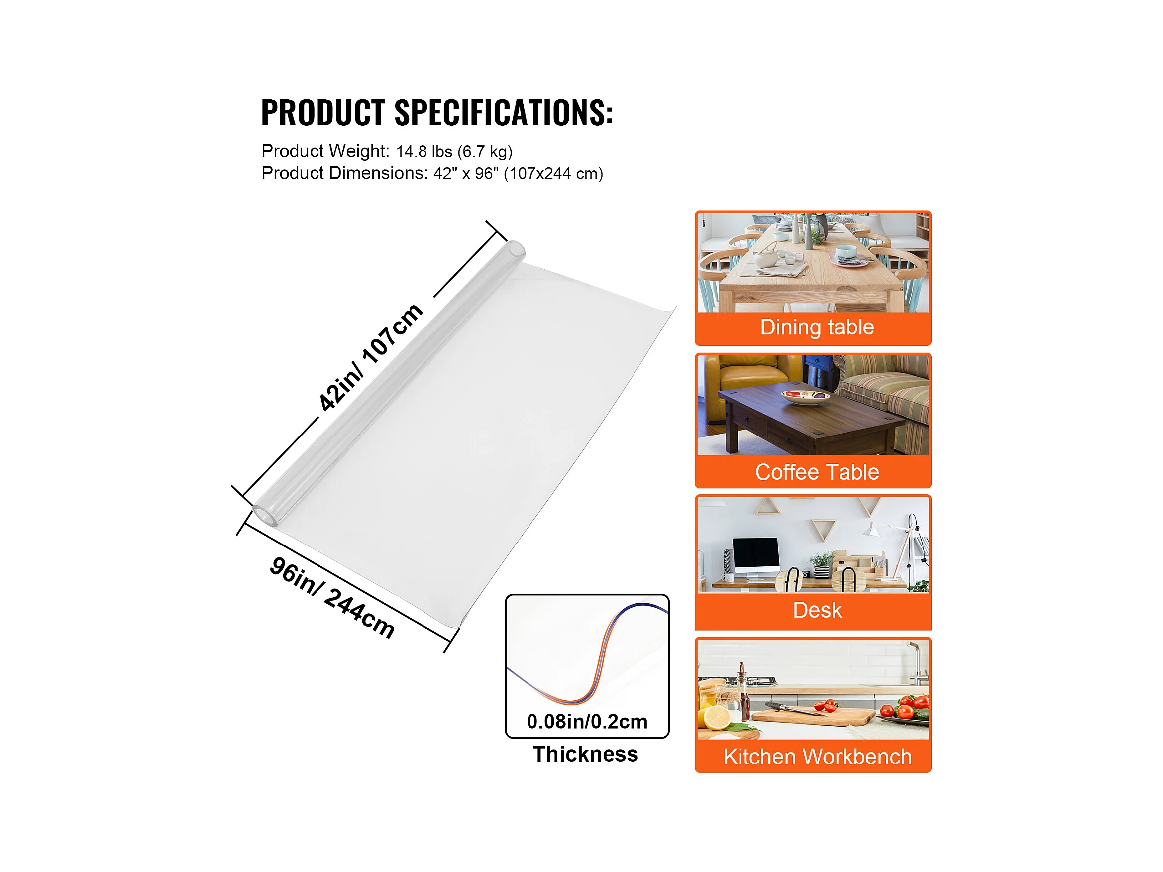 Tovaglia Trasparente SucceBuy Tovaglietta in PVC Trasparente 244 x 107 cm, Copritavolo Rettangolare Spesso