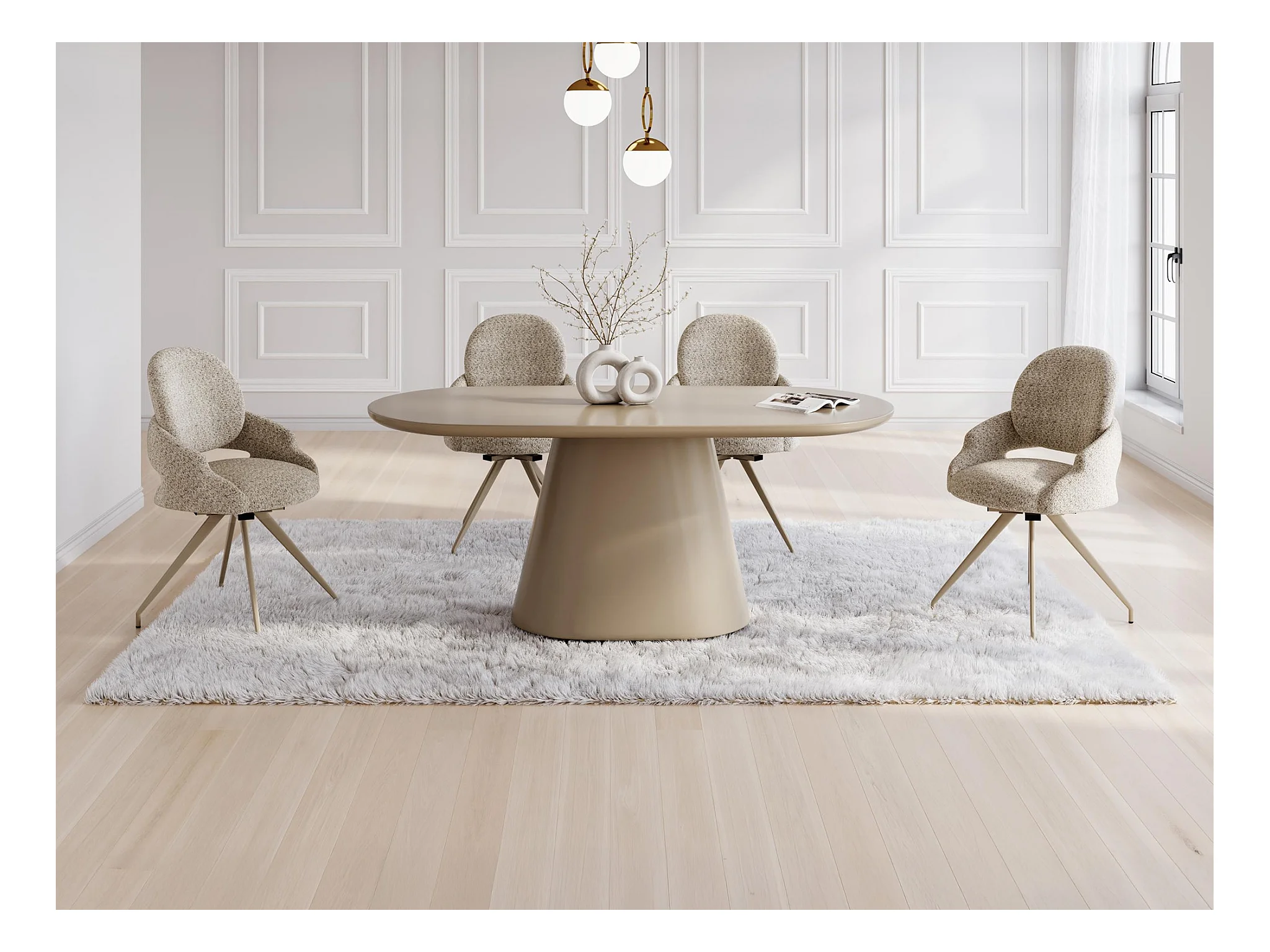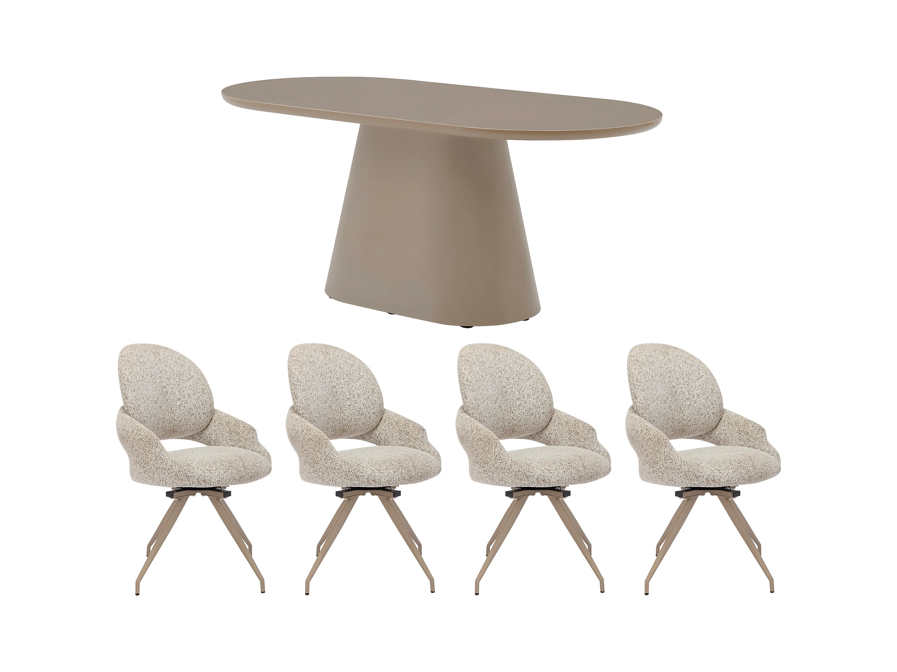 • Con 4 sedie girevoli VALIANA in tessuto tweed testurizzato