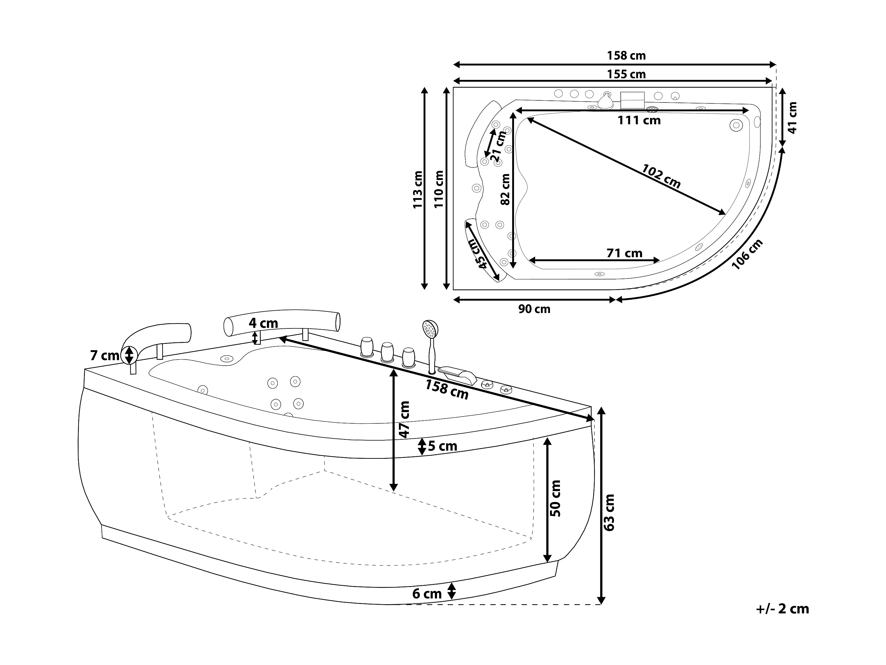 Vasca idromassaggio angolare con LED PARADISO Lato destro 158 x 113 cm Nero
