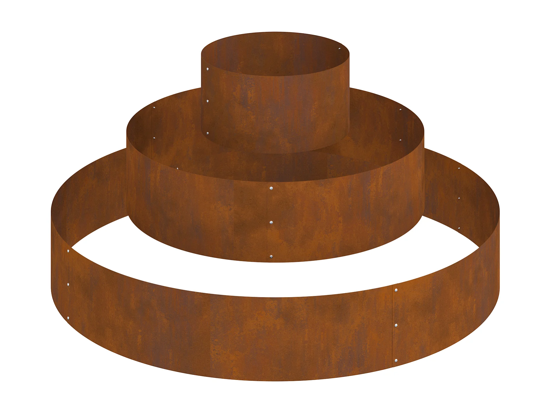 Vaso in acciaio Corten Ø 120 cm con intarsi decorativi
