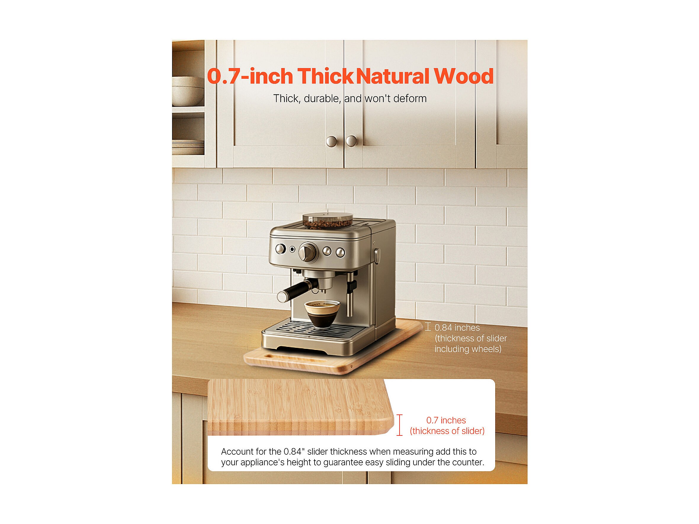 Vassoio Scorrevole SucceBuy per Elettrodomestici da Cucina, 36,8 x 23,9 cm, Vassoio in Legno con Piedini in PTFE, per Piccoli Elettrodomestici da Cucina