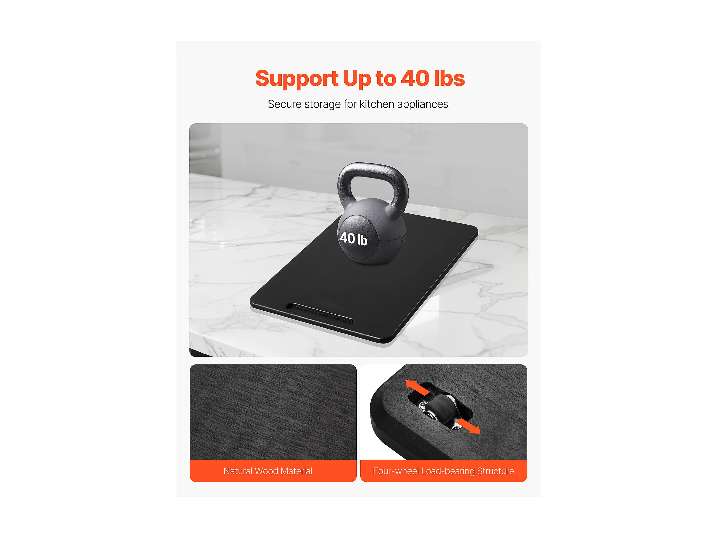 Vassoio Scorrevole SucceBuy per Elettrodomestici da Cucina, 40,6x30,5 cm, Tavola Mobile, per Caffettiera, Piccoli Elettrodomestici da Cucina, Nero