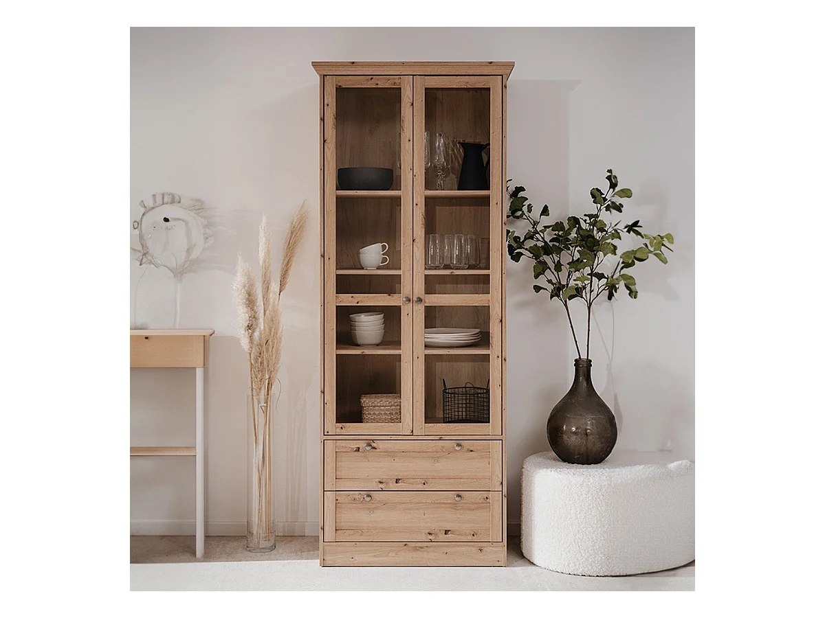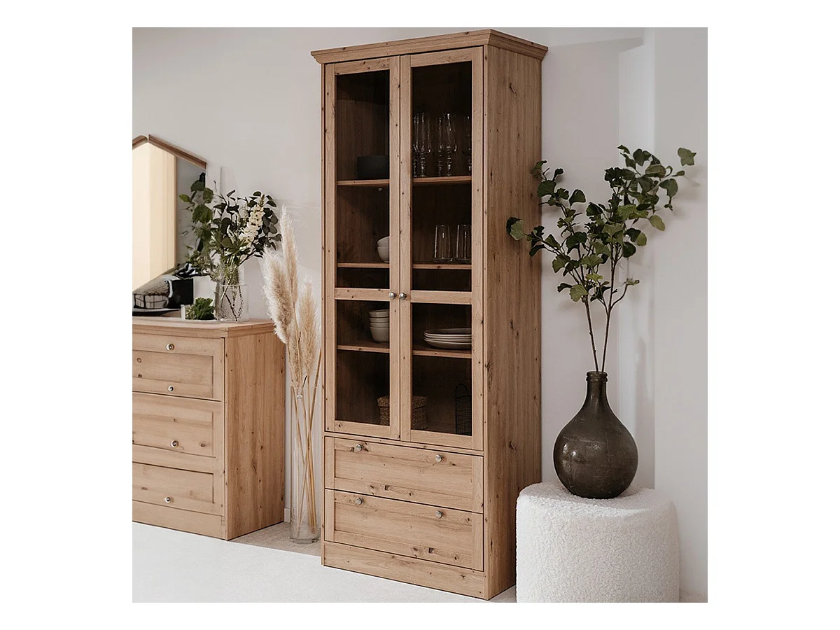 Vetrina 2 ante e 2 cassetti rovere anticato Timber52A 80x45x200H Il fascino del legno naturale nella tua casa