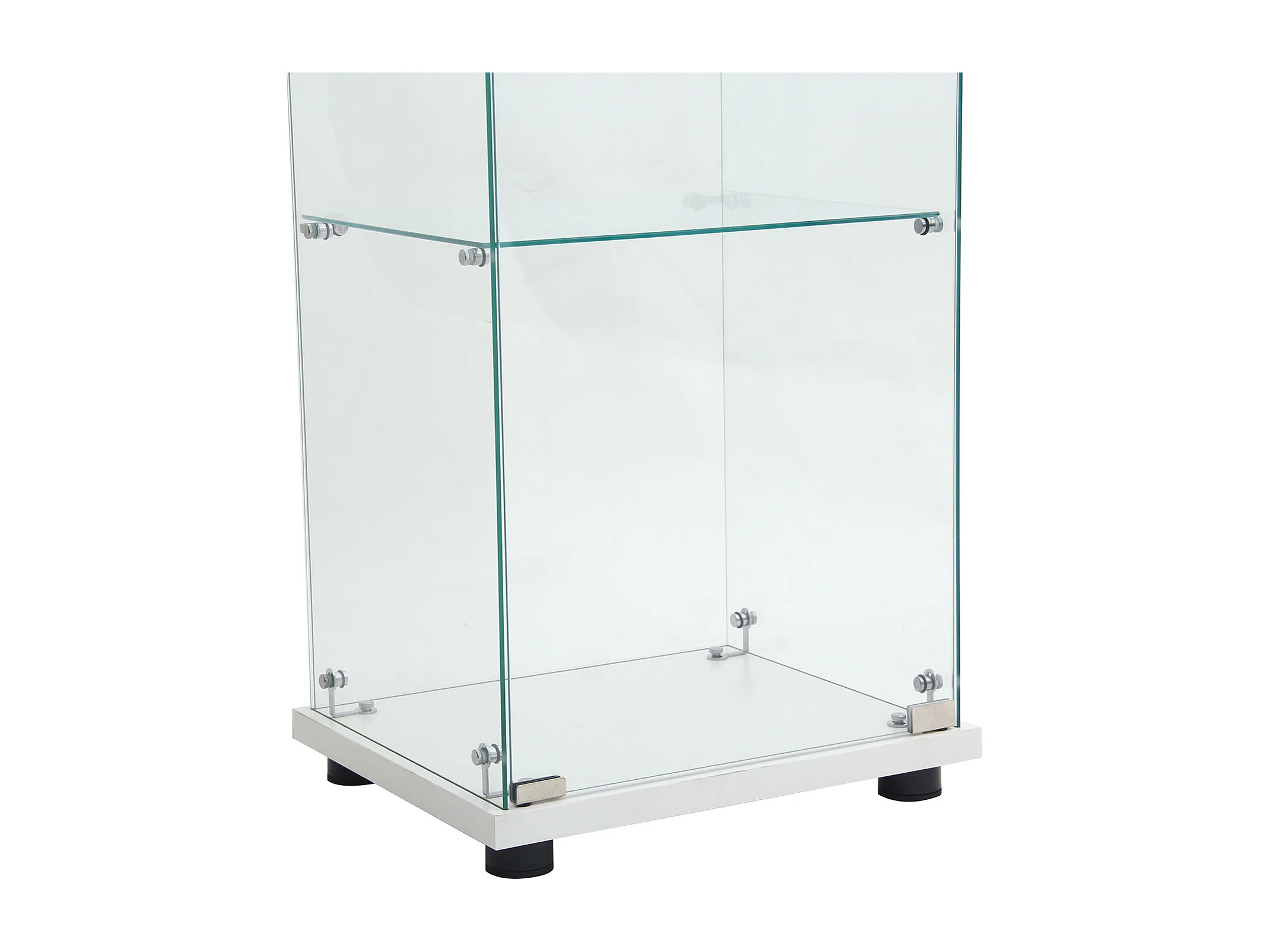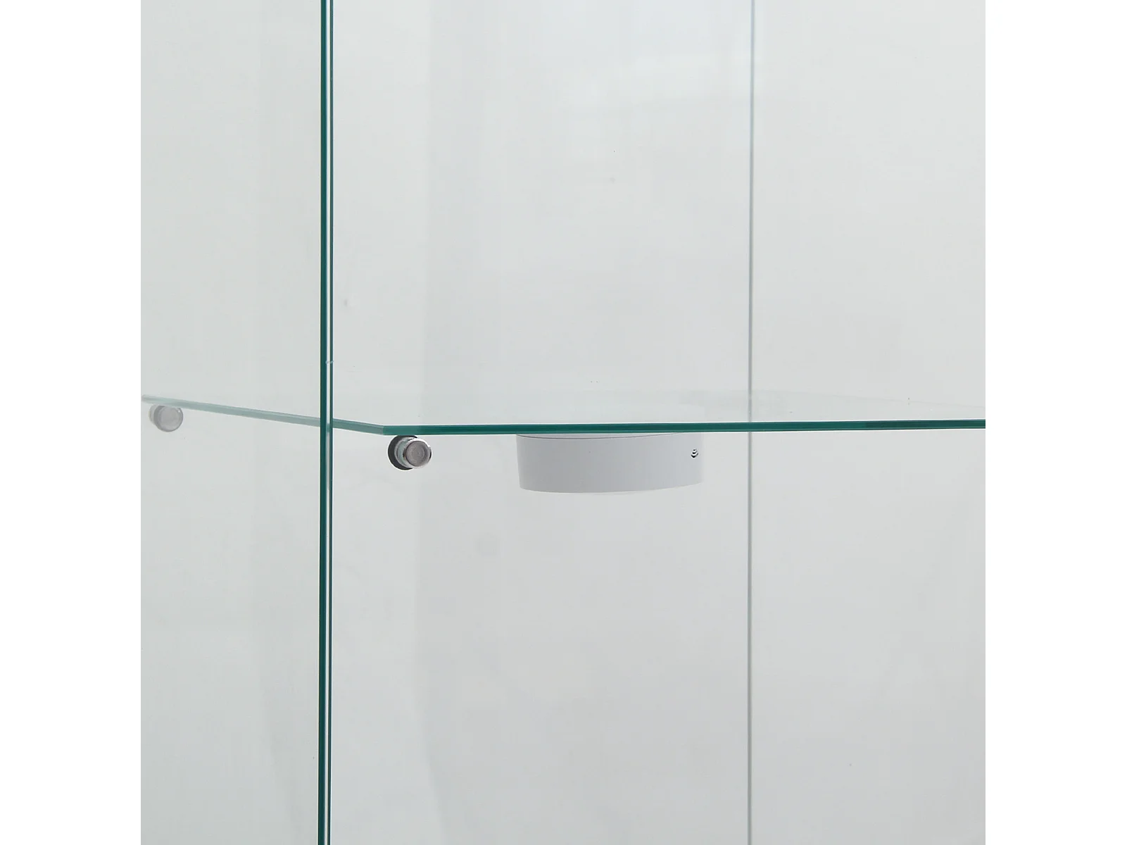 Vetrina autoportante in vetro, 125 cm, con illuminazione a LED, serratura, 1 anta, 3 ripiani, trasparente, bianco