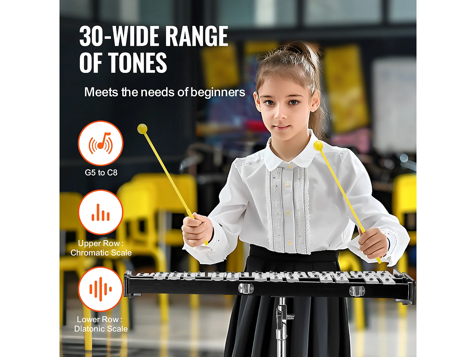 Xilofono Glockenspiel SucceBuy con 30 Toni, Mazze, Supporto e Pad di Allenamento, Set Versatile per Adulti e Studenti