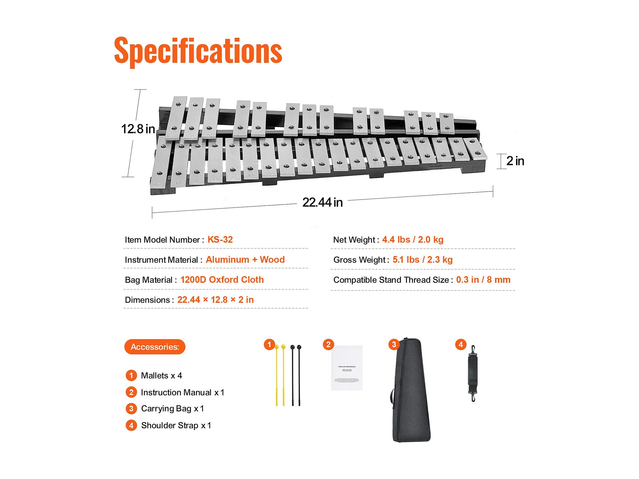 Xilofono Glockenspiel SucceBuy di 32 Note, Set con Mazze, Bacchette e Borsa, Set Versatile per Adulti e Studenti